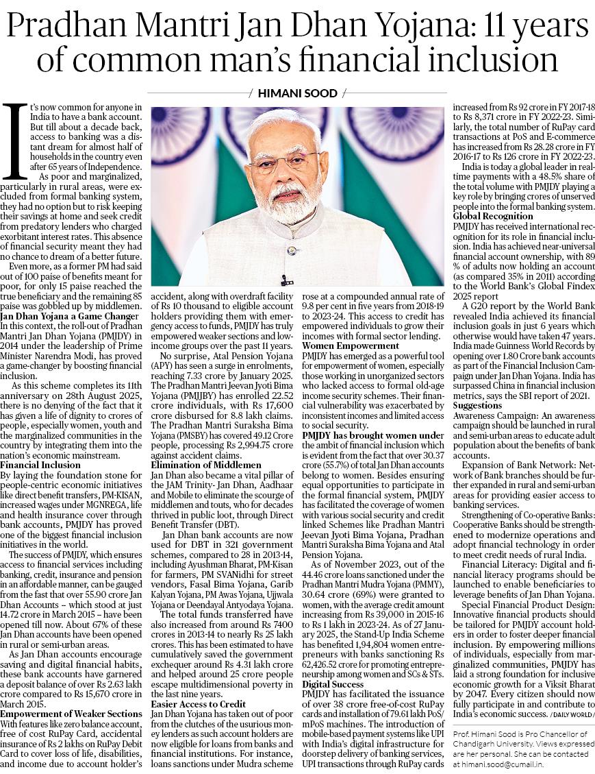 प्रधानमंत्री जन धन योजना ने सबसे गरीब लोगों के लिए वित्तीय सेवाओं तक पहुंच में किस तरह से बदलाव किया, इसकी जानकारी से जुड़े एक लेख को प्रधानमंत्री नरेन्द्र मोदी ने साझा किया