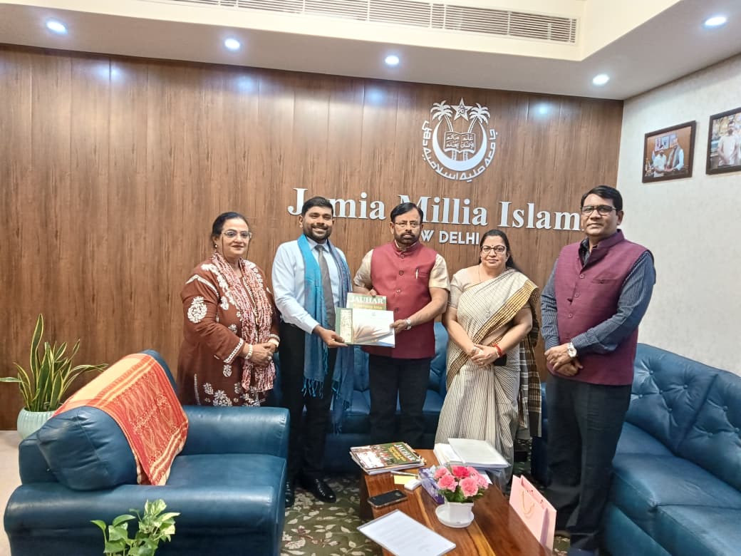 व्याख्यान के बाद, श्री दीदी ने जेएमआई के माननीय कुलपति, प्रो. मज़हर आसिफ़ से मुलाक़ात की। उनके साथ प्रो. प्रीति शर्मा और प्रो. उश्विंदर पोपली भी थीं। उन्होंने भारत-मालदीव और पश्चिम एशिया से संबंधित विभिन्न शैक्षणिक, ऐतिहासिक संबंधों, सांस्कृतिक जुड़ाव और समकालीन मुद्दों पर चर्चा की। कुलपति ने अतिथि के साथ जामिया केंद्रीय पुस्तकालय के समृद्ध पांडुलिपि संग्रह के बारे में जानकारी साझा की। प्रो. आसिफ़ ने विज़िटर को पुस्तकालय कैटलॉग भी भेंट की।