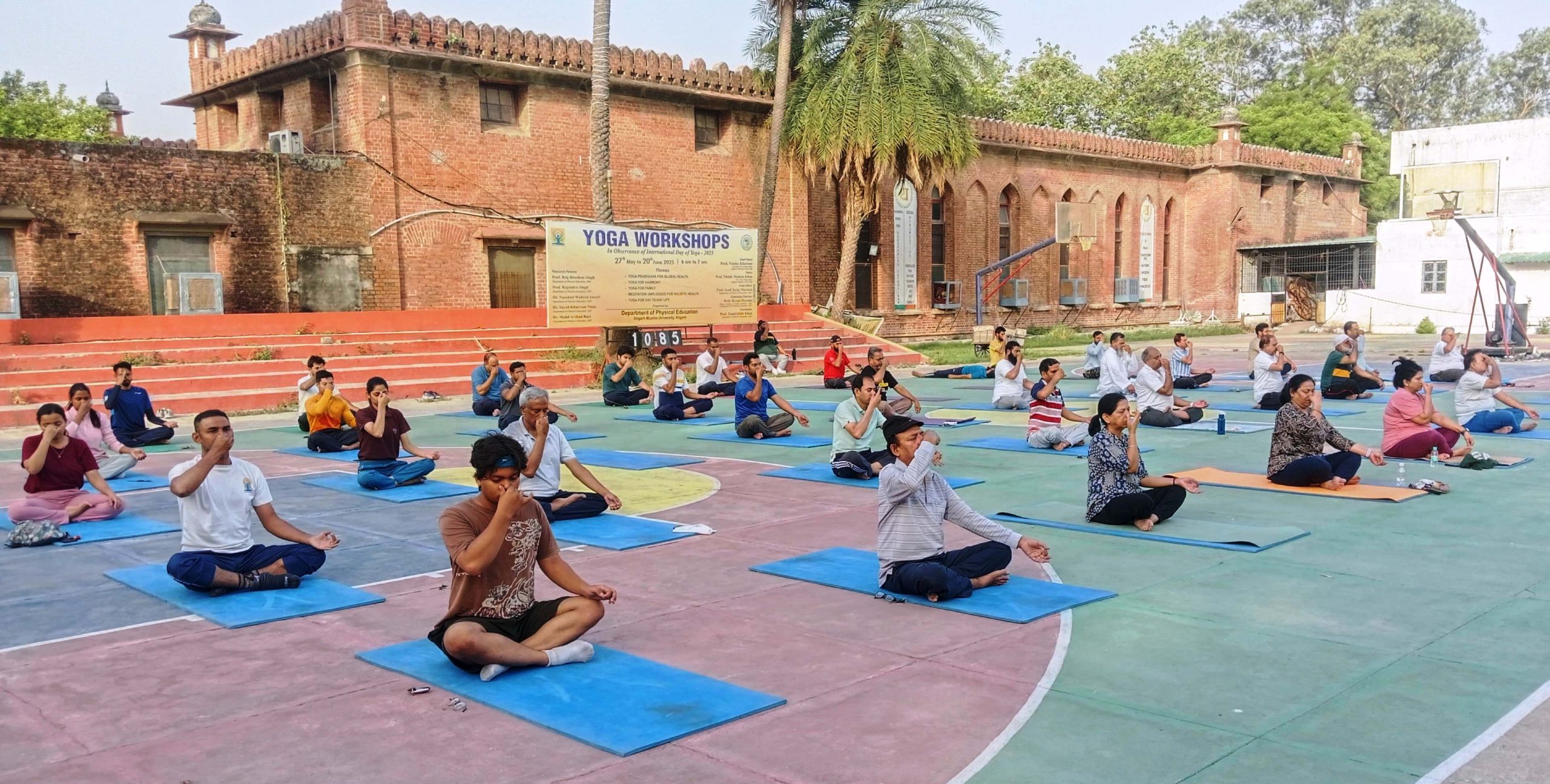सत्र की शुरुआत एक समग्र वार्म.अप अभ्यास से हुई, जिसमें गर्दन, कंधे, धड़ और घुटनों के व्यायाम शामिल थे। इसके बाद खड़े, बैठने, पेट के बल और पीठ के बल लेटकर किए जाने वाले योग आसनों का अभ्यास कराया गया। साथ ही, कपालभाति और प्राणायाम जैसी श्वास तकनीकों का भी अभ्यास किया गया।